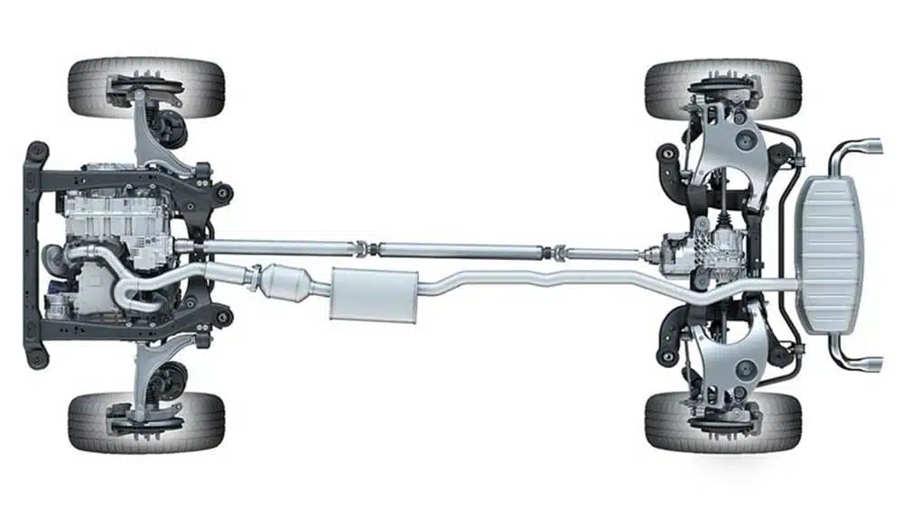 Hệ thống dẫn động 4 bánh toàn thời gian hay còn gọi là AWD đảm bảo mỗi bánh xe đều nhận được một lực như nhau từ động cơ khi ô tô được trang bị hệ thống này. Hơn nữa, thuật toán của ECU giúp hệ thống phân bổ lực kéo một cách tự động, giúp các bánh xe chuyển động.